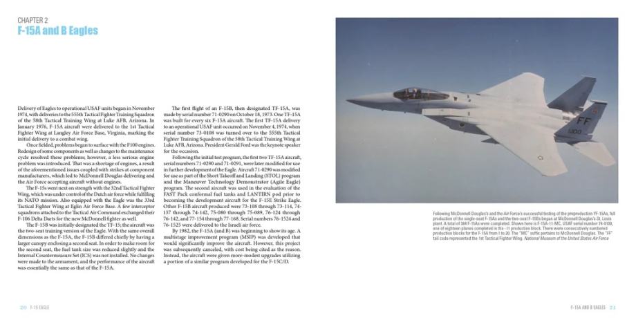 The McDonnell Douglas F-15 Eagle is one of the most successful fighter designs of the 20th century. The type first flew in 1972, transitioning directly from the drawing board to production with remarkably few hiccups. By late 1974, planes were already being delivered to operational units, and it remains on active duty with several major international militaries today, including the US Air Force. Along with an excellent record for safety and reliability, the F-15 has also compiled more than 100 victories without a loss in air-to-air combat. This book has been brought fully up to date with the latest variants, including the F-15EX Eagle II, which entered service just in 2021. Aviation enthusiasts will enjoy more than 300 images, with everything from detail shots on the ground to action-packed aerial photography.