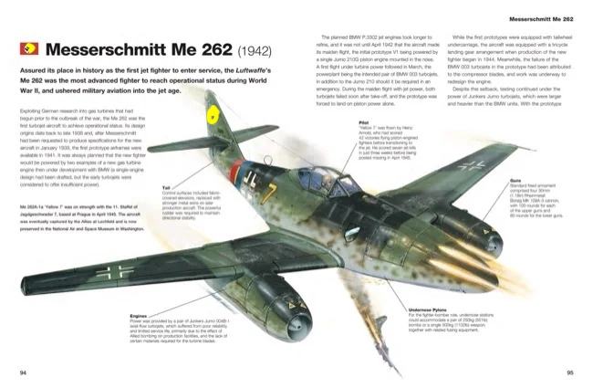 The flyers of the Luftwaffe spearheaded the German blitzkrieg during the early years of World War II, providing a key aerial element to the German war machine that swept all before it. Later in the war, the Luftwaffe concentrated on defence, producing the world’s first rocket- and jet-propelled fighters. German Aircraft of World War II features 52 of the greatest aircraft to fly for the Luftwaffe from 1939 to 1945. Included are the Junkers Ju-87 Stuka divebomber, an aircraft with a shrieking siren that terrorized ground troops and civilians in Poland, France and the Low Countries; the Messerschmitt Bf 109, one of the most adaptable and longstanding fighters of the war that served in every theatre in a variety of roles; the twin- engined Ju-88, which served as a tactical bomber in the early phase of the war and later as a night-fighter during the defence of the Reich; and the Messerschmitt Me 262, the first jet fighter to enter service for any air force and a highly-effective interceptor against Allied bombers from 1944 onwards. Each entry includes a brief description of the type’s development and history, a dynamic artwork, key features and specifications. Packed with more than 200 artworks and photographs, German Aircraft of World War II is an exciting guide for the military historian and aviation enthusiast.