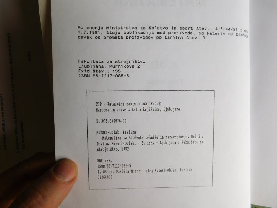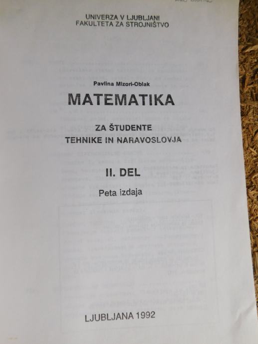 Matematika za študente naravoslovja. Avtorica Pavlina Mizori Oblak, Strojna fakulteta v LJ, leto 1992. Drugi del-peta izdaja.