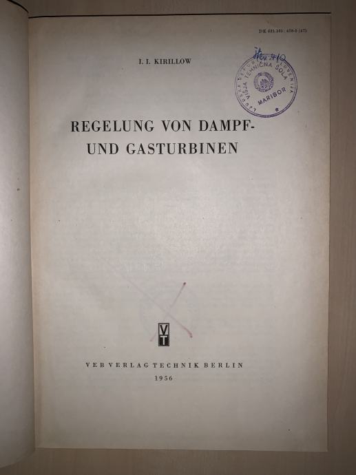 Prodam knjigo Regulacija parnih in plinskih turbin v nemškem jeziku z nemškim naslovom REGELUNG VON DAMPF UND GASTURBINEN.