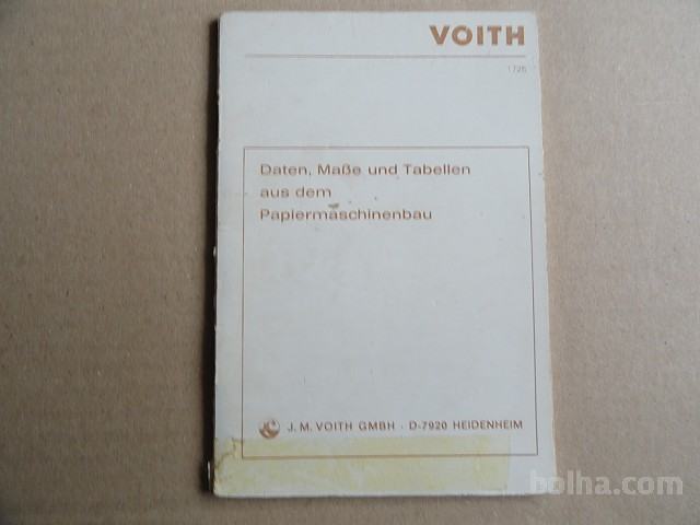 VOITH, DATEN MASE UND TABELLEN AUS DEM PAPIERMASCHINENBAU