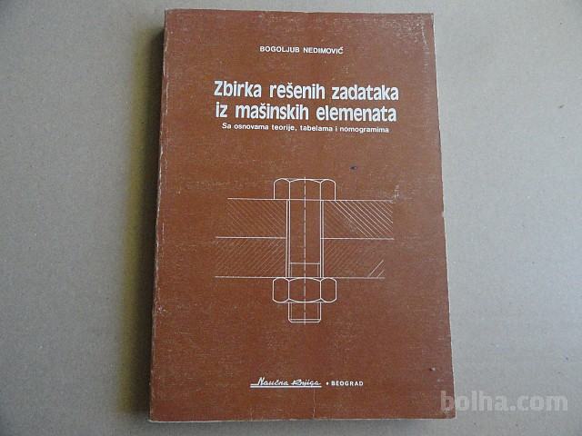 Knjiga ZBIRKA REŠENIH ZADATAKA IZ MAŠINSKIH ELEMENATA, SA OSNOVAMA TEORIJE, TABELAMA I NOMOGRAMIMA, BOGOLJUB NEDIMOVIĆ, NAUŠNA KNJIGA BEOGRAD 1987, v srbohrvaškem jeziku, broširana, dobro ohranjena.