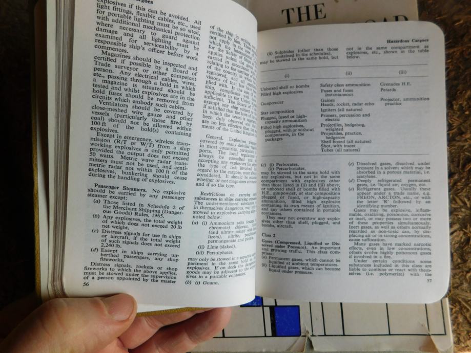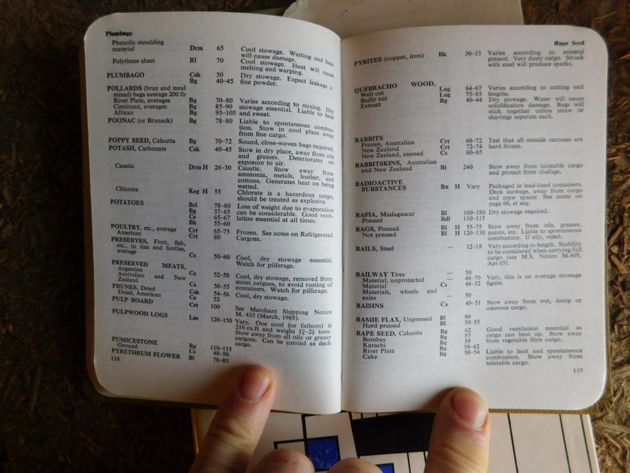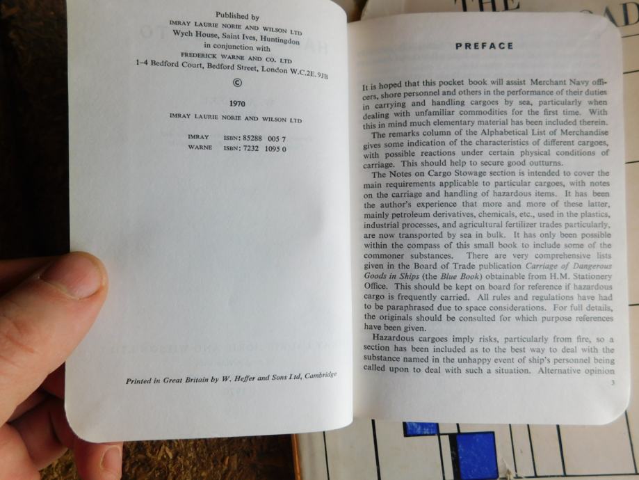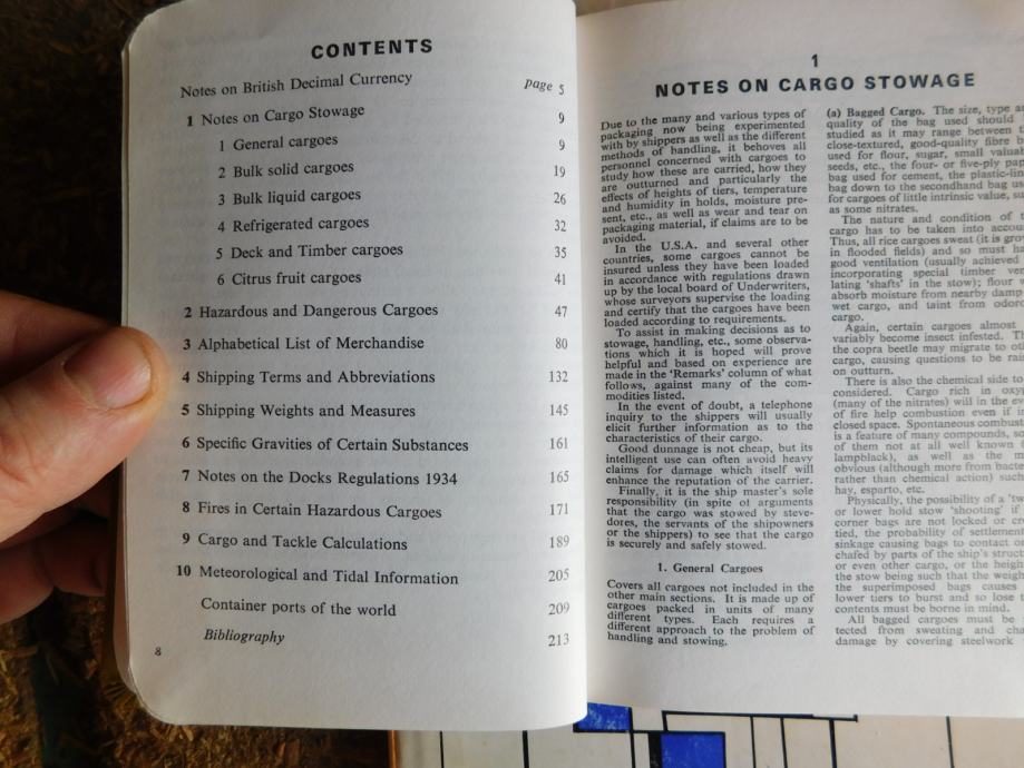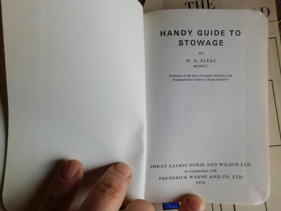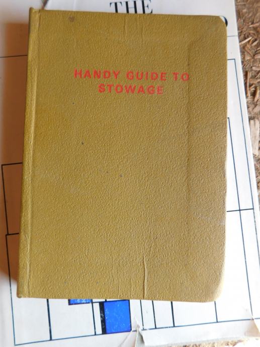 Žepni priročnik za nalaganje trgovskih ladij z različnim tovorom, Angleški jezik, original naslov : HANDY GUIDE TO STOWAGE. Izdan v Londonu leta 1970.