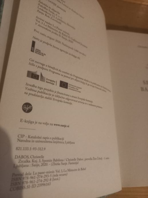 Tretji del serije Zrcalka. Napaka pri tisku naslovnice, sicer je knjiga nova. Založba Sanje 2020.