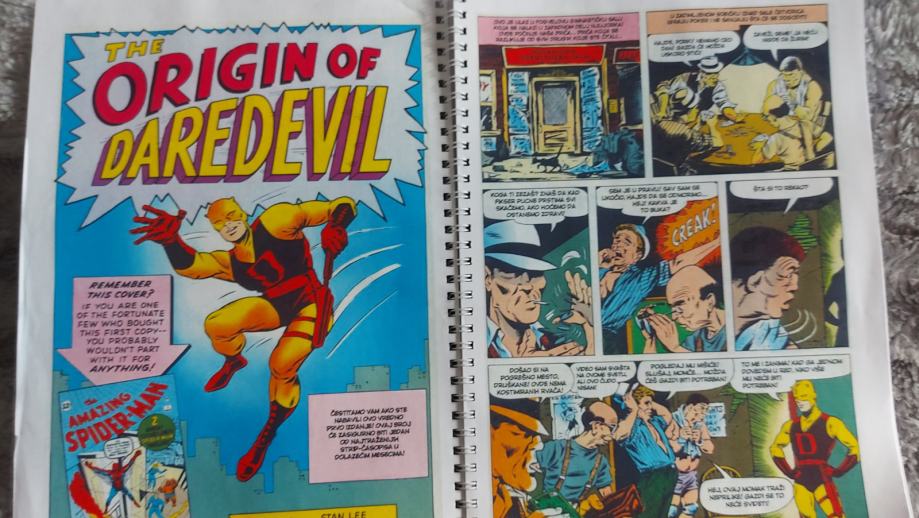 Prodam zbirko doma tiskanih in prevedenih stripov od Marvel junaka Daredevil. Trenutno imam prvih 49 številk, ki so vezane po sedem skupaj v knjigo. Vsaka knjiga ima 140 strani, skupaj sedem knjig. Originali so v ZDA izhajali od 1962 do 1968 leta. Prevedeni so v hrvaščino in so v barvah. Cena za eno knjigo je 8€, vseh sedem skupaj pa za 55€.