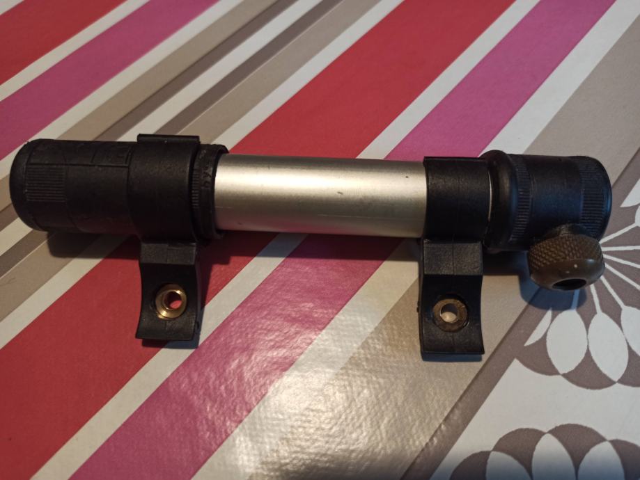 Prodam rabljeno kolesarsko mini tlačilko ARIA ( presta ventil ) z nosilci za pritrditev na okvir kolesa. Velikost 16 cm, raztegnjena 26 cm. Tlačilka je kovinska-aluminijasta in ne plastična kot nekatere manj kvalitetne.