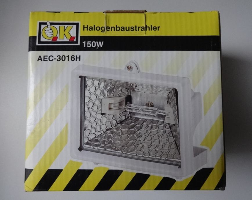 Reflektorska svetilka s halogensko žarnico 150W, za stensko montažo, nova.