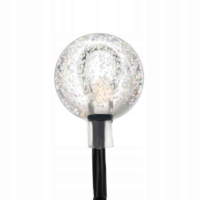 Okrasne krogle iz visokokakovostnega polistirena Solar LED girlanda je elegantna in funkcionalna dekoracija, ki bo zagotovo dodala čar vsakemu prostoru. Sestavljen je iz 100 kroglic, od katerih je vsaka izdelana iz visokokakovostnega polistirena. Ta material ni samo vzdržljiv, ampak tudi estetski, zaradi česar je girlanda okras tudi, ko ni vklopljena. Vsaka kroglica je rahlo prozorna in vsebuje drobne zračne mehurčk , ki ji dajejo edinstven značaj. Ti mehurčki ne polepšajo le videza kroglic, ampak tudi učinkovito razpršijo svetlobo , ko je girlanda vklopljena, kar ustvarja prijetno, toplo vzdušje. Zahvaljujoč senzorju mraka začne girlanda svetiti takoj, ko se zmrači, ne da bi jo bilo treba prižgati .