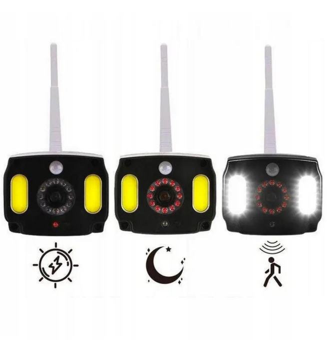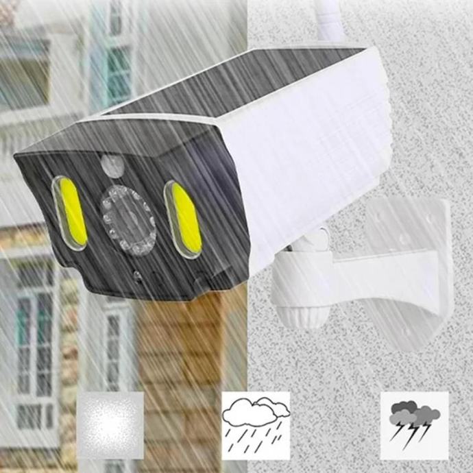 Solarna akumulatorska lažna nadzorna kamera je opremljena s COB LED svetilko, ki zagotavlja močno osvetlitev in pripomore k boljši vidljivosti v temi. Svetilka se samodejno vklopi ob zaznavi gibanja, kar dodatno povečuje učinkovitost naprave pri odvračanju nepridipravov.