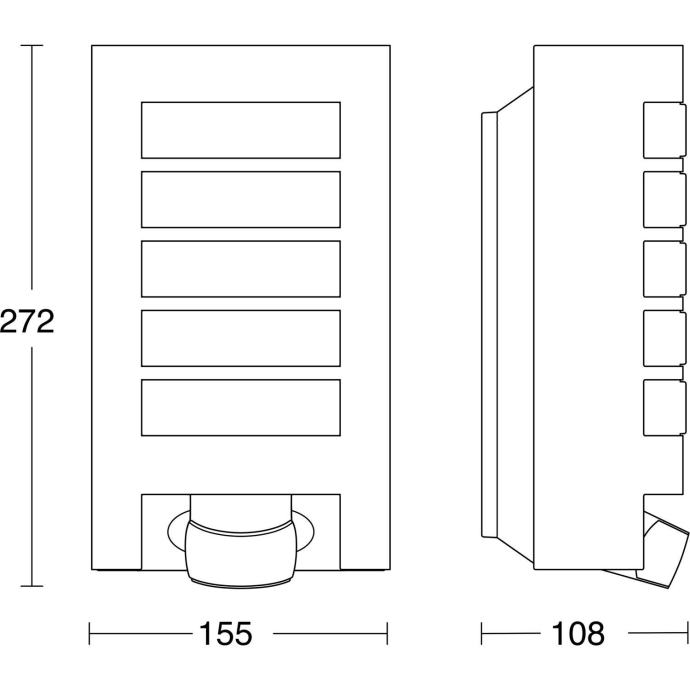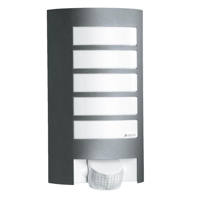 Zunanja stenska svetilka s senzorjem gibanja Steinel L 12 združuje sodoben dizajn s funkcionalnostjo za vašo hišno steno ter estetsko in enakomerno osvetlitev. Privlačna ambientalna svetilka je posebej primerna za dovoze, hišne stene ali stranske vhode. Z velikim, nastavljivim področjem zaznavanja je pravi vrhunec na vsaki hišni steni.Zunanja svetilka z vrtljivim senzorjem gibanjaZunanja svetilka je opremljena s senzorjem gibanja in natančno osvetljuje hišne vhode in sprednjo stran hiše. Senzor gibanja lahko zazna vsakršno gibanje na razdalji do 10 metrov pod kotom 180°. Senzor se lahko navpično zavrti za 90°. Tako lahko področje zaznavanja natančno prilagodite. Nastavljiva sta tudi trajanje osvetlitve in prag mraka (Stopnja mraka 2-2.000 luksov, čas osvetlitve 8 sekund - 35 minut). Moderna oblika za privlačne svetlobne učinkeZunanji reflektor je s svojo moderno obliko primeren za vsak slog hiše in fasade. Kombinacija odpornega polikarbonatnega pokrova s kakovostnim aluminijem daje svetilki lep videz in dobro porazdelitev svetlobe. Svetilka je s svojo stopnjo zaščite (IP44) odlično zaščitena pred vetrom in vremenom.