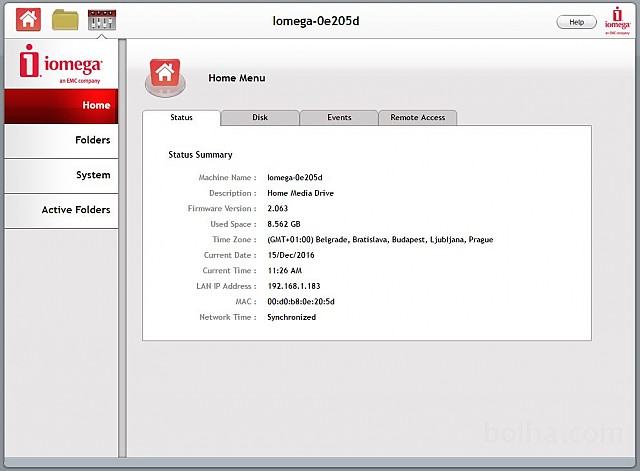 Prodam "NOV" zunanji disk legendarnega podjetja iOmega. Disk ima lično oblikovano aluminijasto ohišje s priključkom za napajanje, USB dodaten disk ali tiskalnik in Giga RJ45 vtičnico za priklop na omrežje. Lahko ga uporabljamo za backup podatkov, kot DLNA mulitmedijski strežnik, poštni strežnik,.... Do podatkov lahko dostopamo od kjerkoli v internetu.