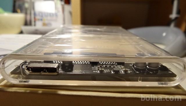 Novo ohišje za trdi disk velikosti 2.5" z vmesnikom SATA, vmesnik USB 3.0 za povezavo z računalnikom, hitrost prenosa do 5Gb/s.