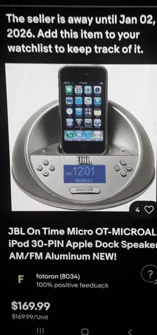 Prodajam ugodno ohranjeno kvalitetno JBL zvočno postajo, ki omogoča predvajanje glasbe preko priklopne postaje. Postaja ima se poleg radio fm / am, uro, alarem, aux. Postaja deluje vrhunsko samo zaradi neuporabe sem zaluzil polničec 12v zato pa cena tako niska. Elegantna okrogla oblika z vgrajenim zaslonom in funkcijo prikaza ure bo popestrila vsak prostor. Tel 031744457 lp